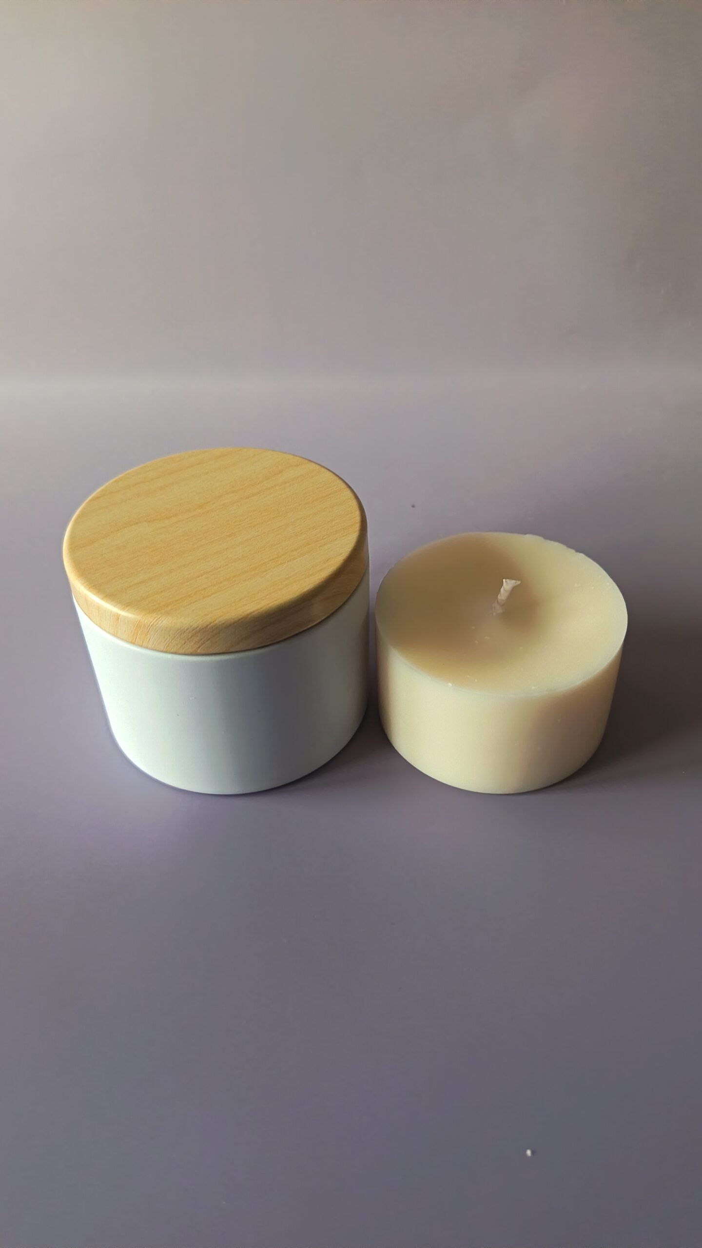 Pot métal blanc livré avec sa recharge naturelle sans parfum.